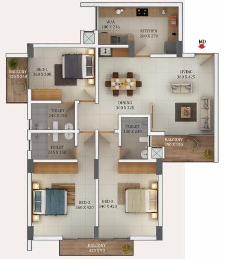 3 BHK, 2250 SqFt, Flat, Kaloor