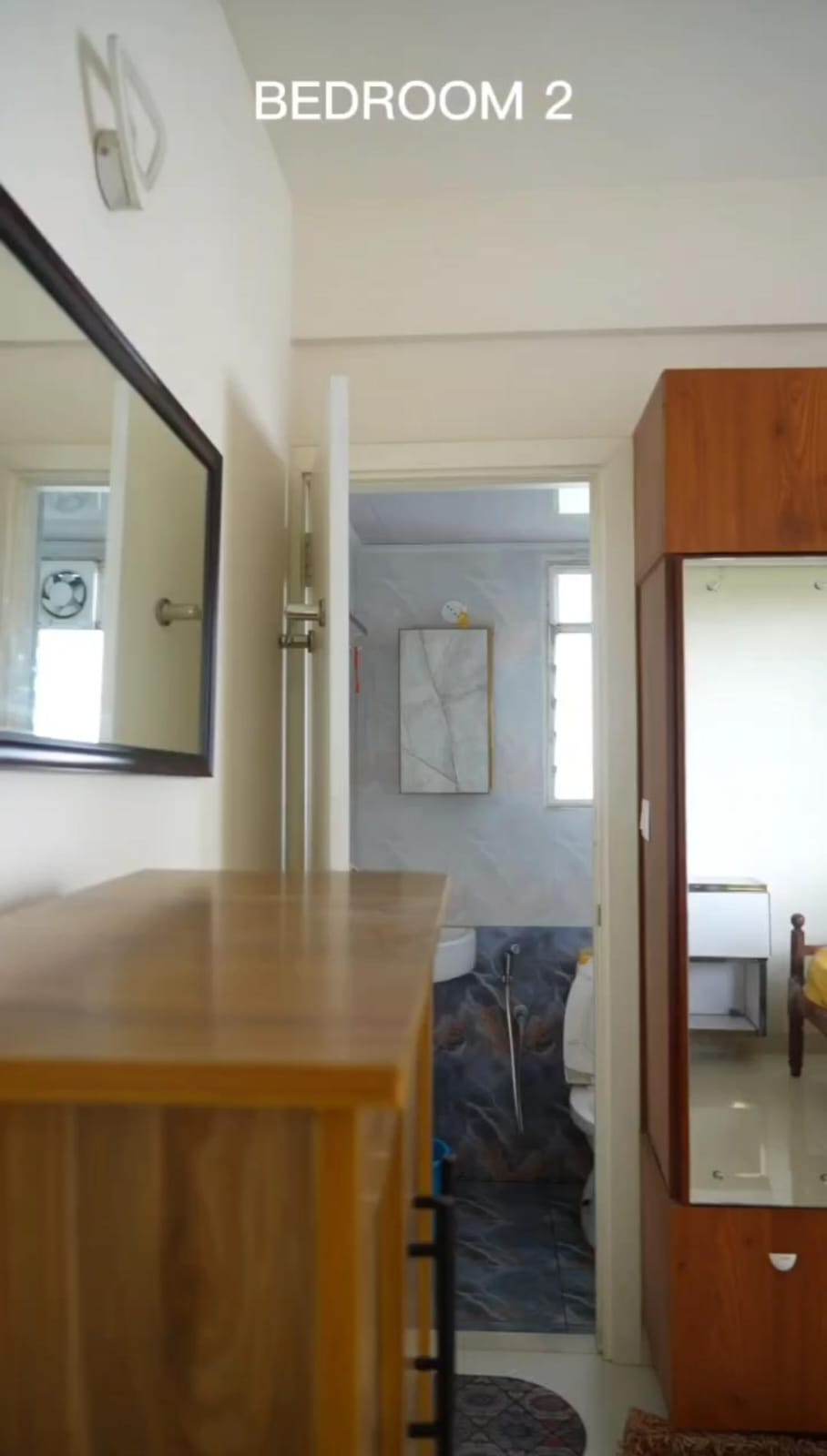 2 bedrooms with attached bathrooms.